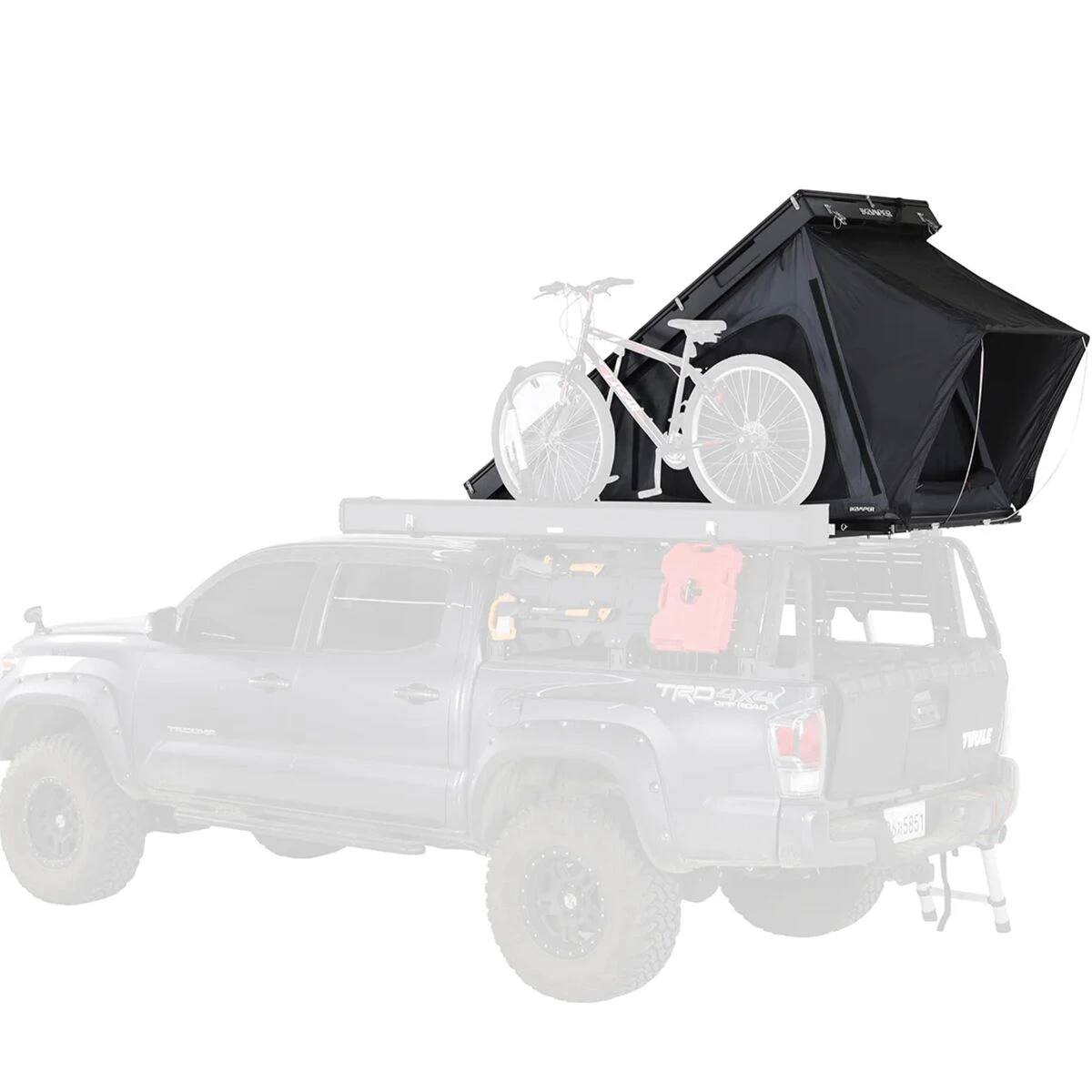 - Rugged rooftop tent for year-round solo adventures