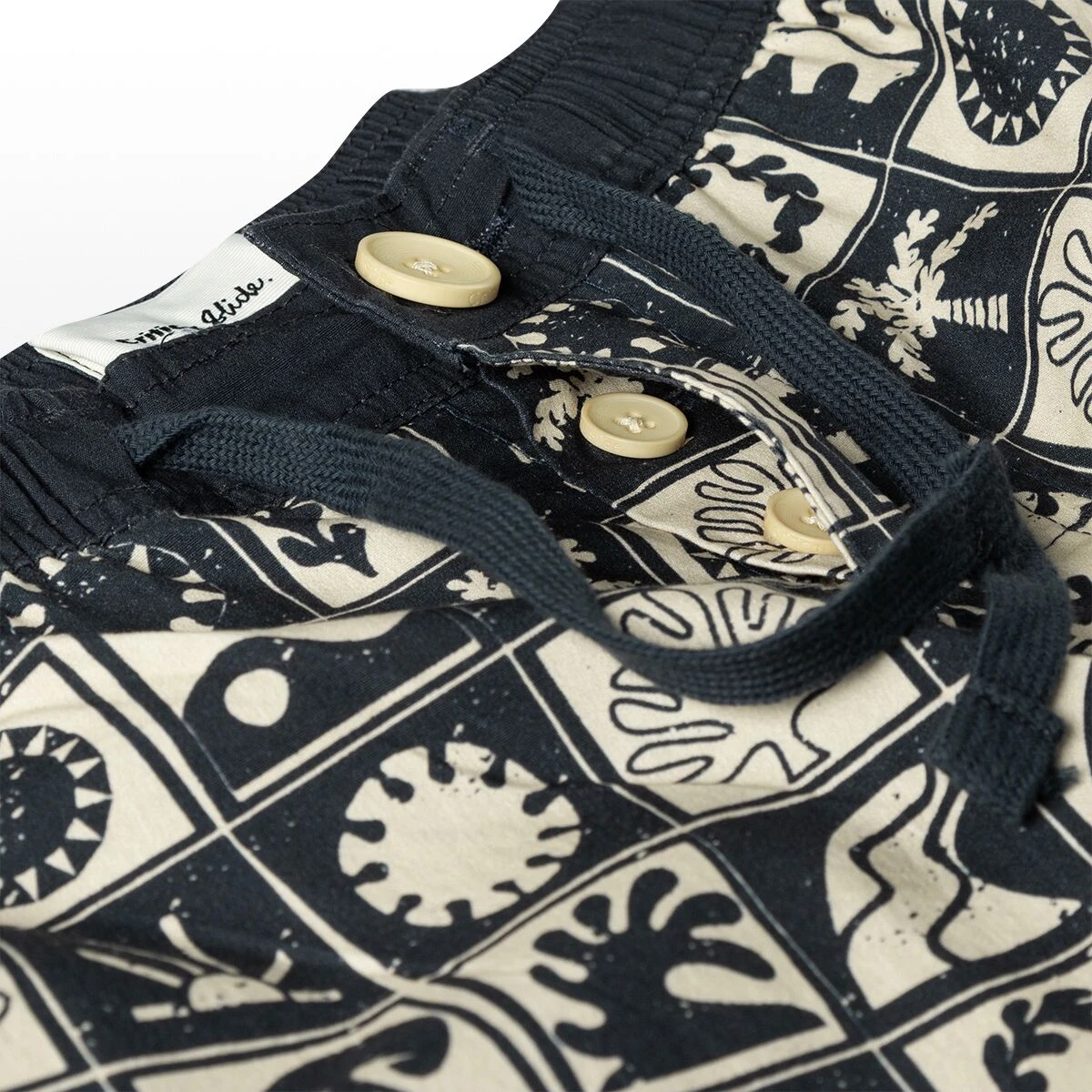 The Bueno Trunk is a check repeat print with contrast solid waistband.