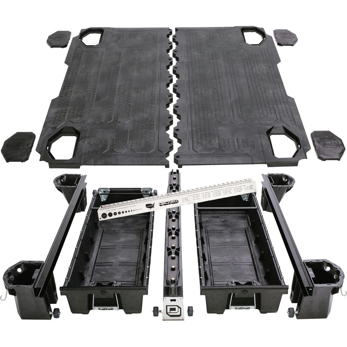 If you have extra space, you can use one of the drawers for ice and beers; using the integrated bottle opener if you forget yours at home. This burly Decked Truck Bed is made from a steel frame and wrapped in stiff HDPE to create a load rating of 2000 pounds. You can stack plenty of gear on top. The Decked Nissan Truck Bed System is designed to fit Nissan Titan trucks from the 2008 model to the current model.