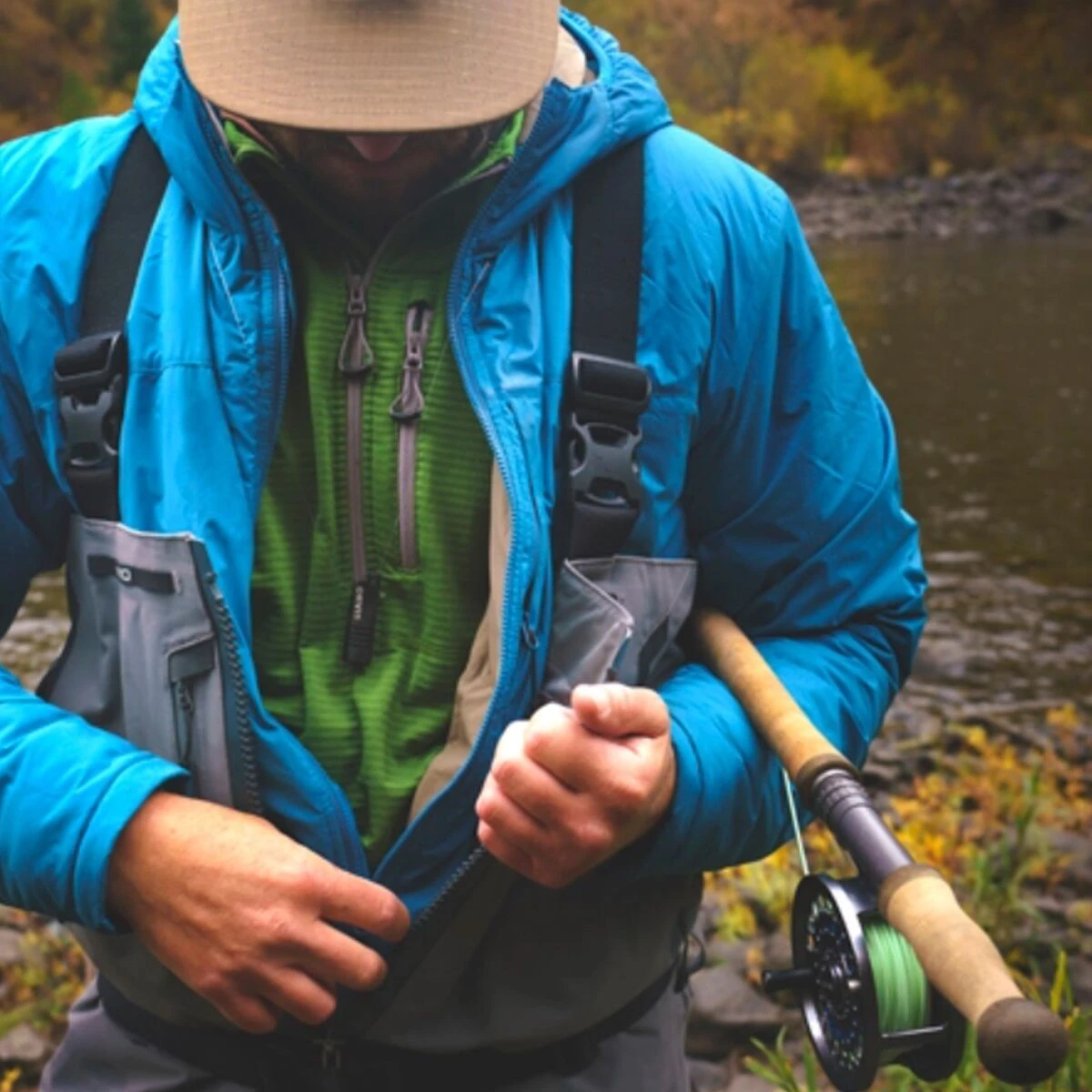 - Fly-fishing waders designed for ultimate convenience and performance