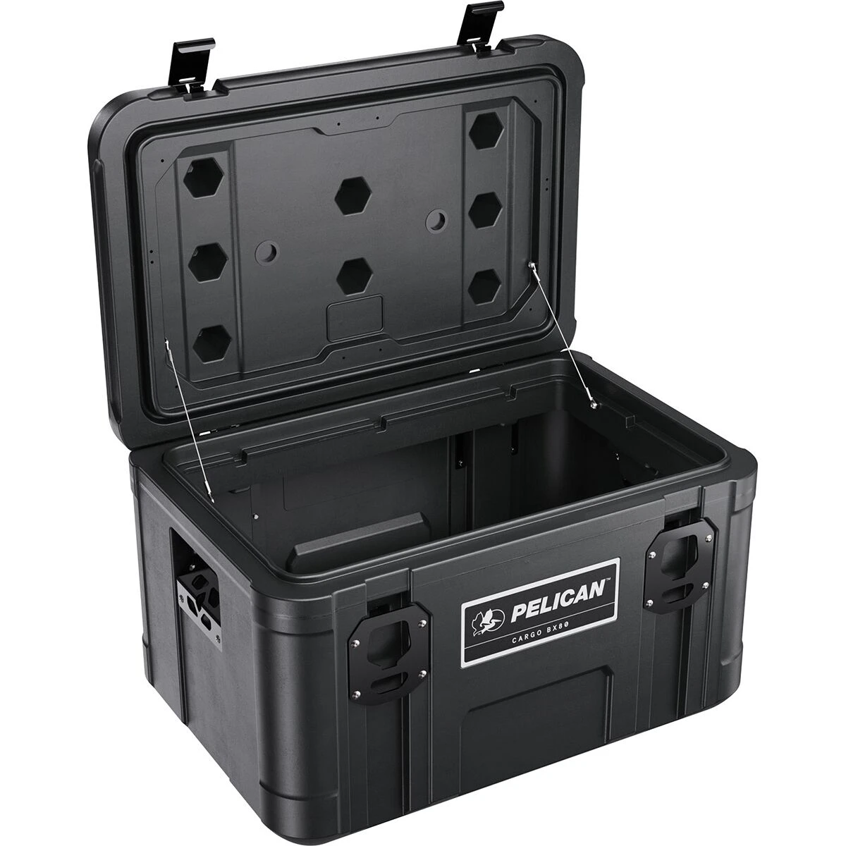 We keep our camping supplies organized and protected in the Pelican Cargo Case SM Trunk. This durable case stays closed thanks to metal latches and is easy to carry due to multiple grab handles.